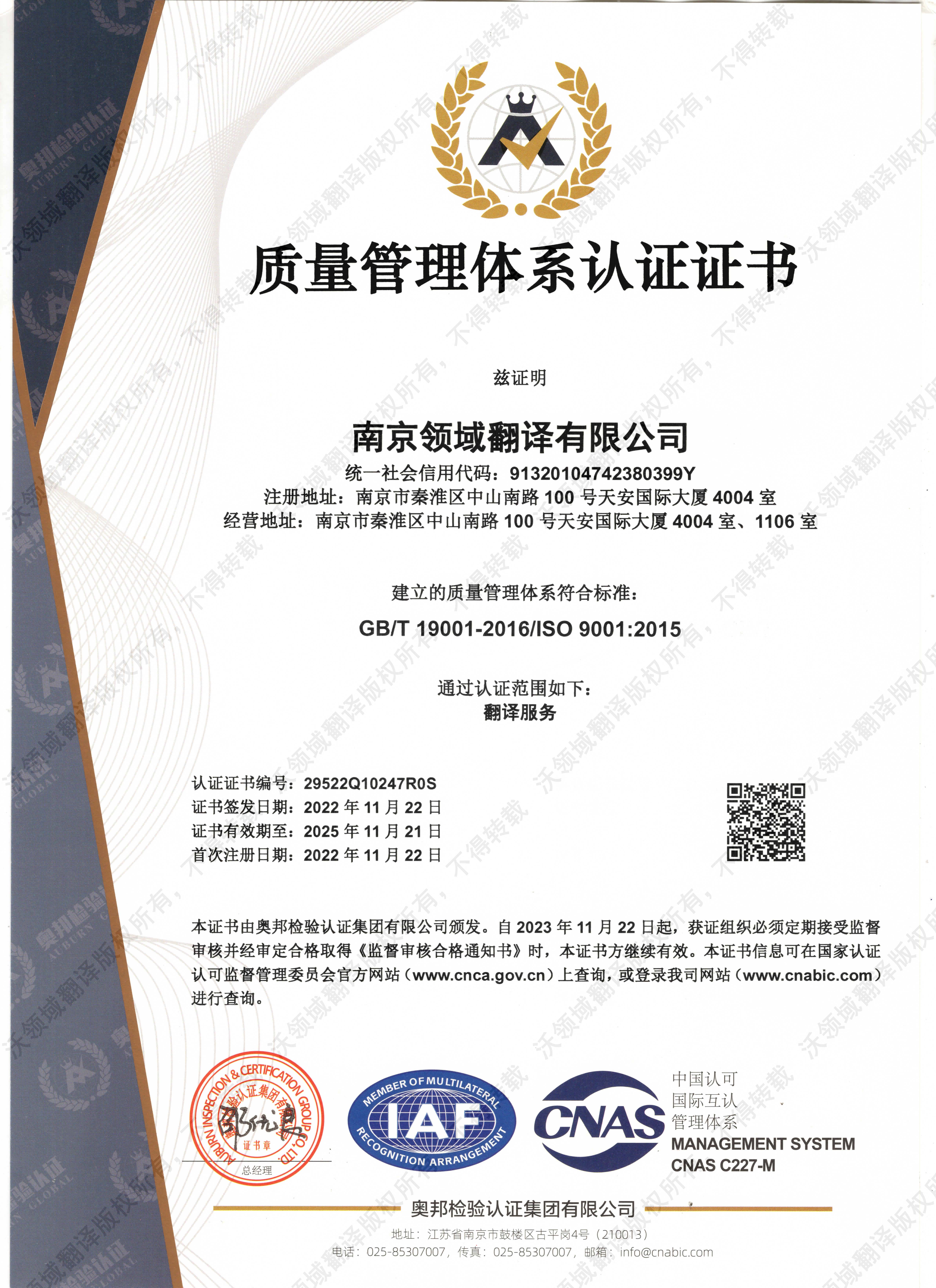• ISO 9001:2015質量管理體系認證